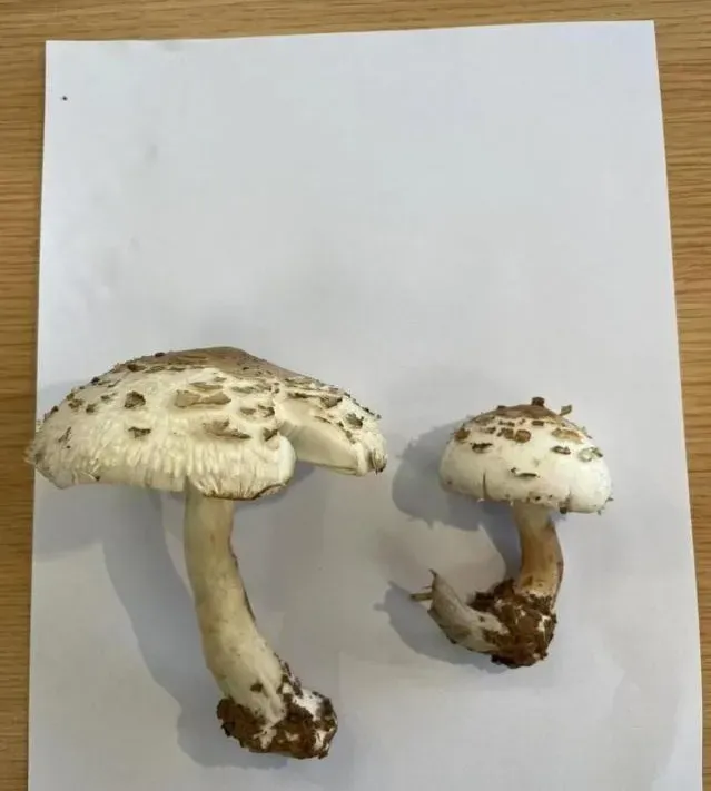 剧毒灰花纹鹅膏、裂皮鹅膏均为灰白色,与可食用口蘑极相似。