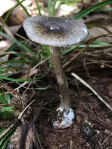 灰花纹鹅膏菌菌盖灰褐色,白色菌褶,有菌环,外形易与无毒的草鸡枞菌相混淆。误食后,潜伏期为6~12小时,首发症状多为急性胃肠炎表现,严重者出现暴发性肝功能衰竭,可进展至多器官功能衰竭甚至死亡。症状、潜伏期与灰花纹鹅膏菌相似的有裂皮鹅膏菌,其菌盖中央凸起呈斗笠状,菌柄基部有“菌托”。